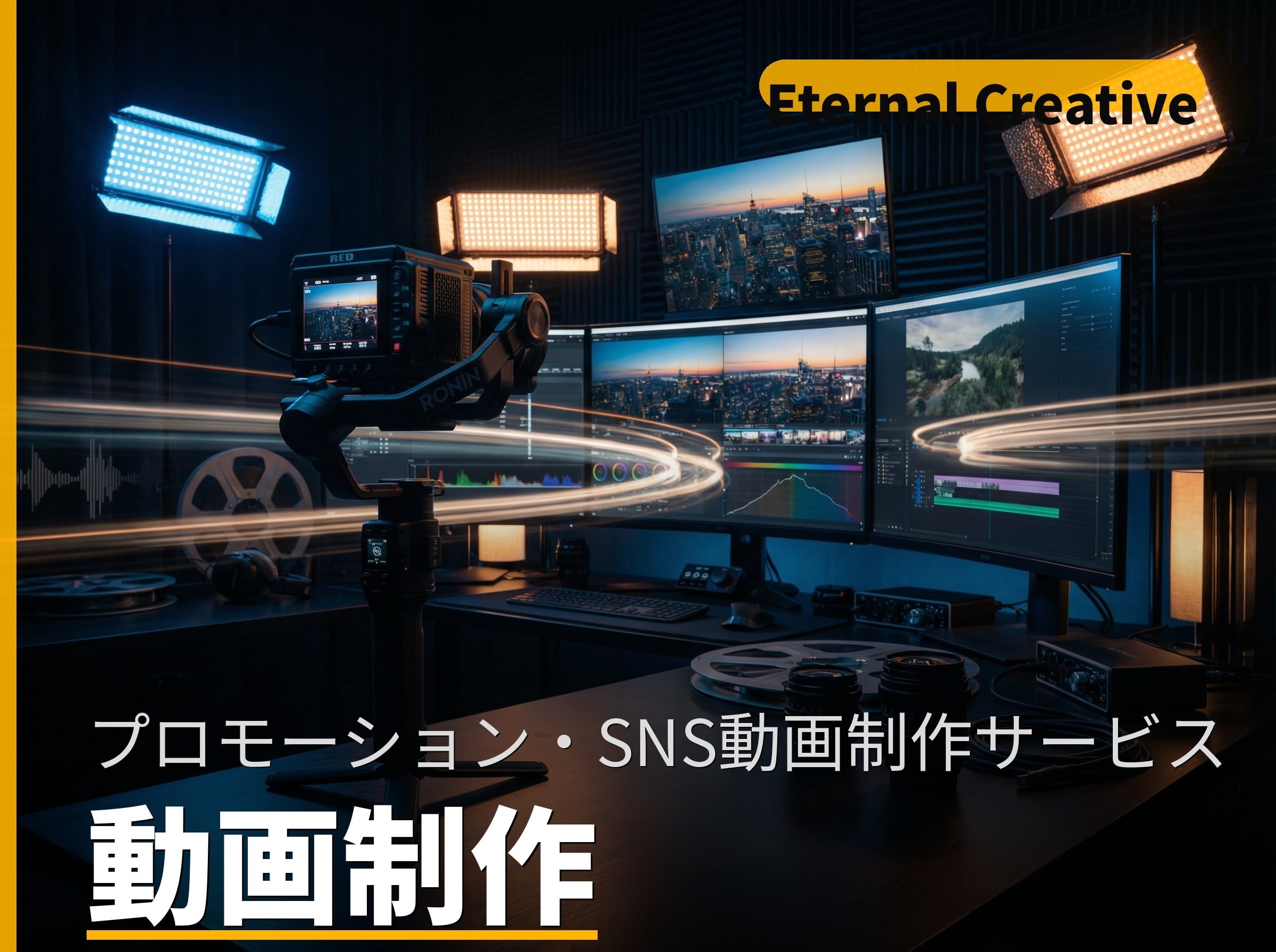商品・サービスのプロモーション動画、Instagram/TikTok/YouTube向けショート動画、企業紹介映像、イベント告知動画など、目的に合わせた動画を制作します。最新の映像技術と実写素材を組み合わせた独自のスタイルで、他にはない印象的な映像表現が可能です。